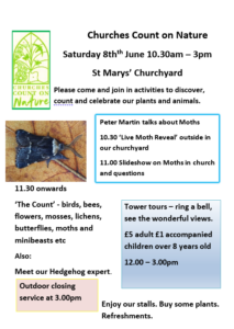 Count on Nature – Saturday 8th June Thank you all so much for being an amazing team and enabling us to celebrate and know more about God’s creation. It wasn’t…