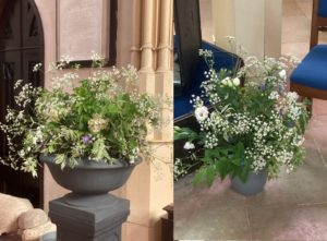 To tie in with our caring for the environment, here are this week’s church flowers arranged with love, no oasis and hand picked from our gardens.