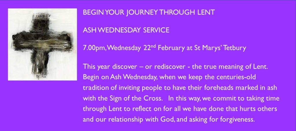 Services in our churches week beginning 26th February 2023 Sunday 26th February St Marys’ Tetbury 8.30am: BCP Holy Communion St Marys’ Tetbury 10.00am: Family Communion St Mary’s Beverston 10.00am:Matins Holy…