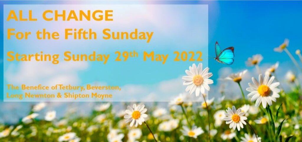 Share in our new pattern of Benefice Worship for 5th Sundays Sunday 29th May: The Ascension 8.30am Benefice BCP Holy Communion at St Marys’ Tetbury followed by 10am Benefice Worship…